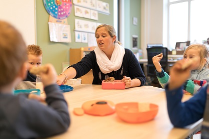 Op onze school hebben we een continurooster. De kinderen eten tussen de middag op school en gaan dus niet naar huis. We pauzeren van 12.00 uur tot 12.30 uur, en eten met juf of meester in de klas. Vaak wordt er tijdens het eten voorgelezen. Daarna gaan we nog even naar buiten voor een frisse neus. Na de pauze werken we weer verder, en zijn dan om 14.15 uur vrij. Op die manier hebben de kinderen nog een lekkere lange middag.